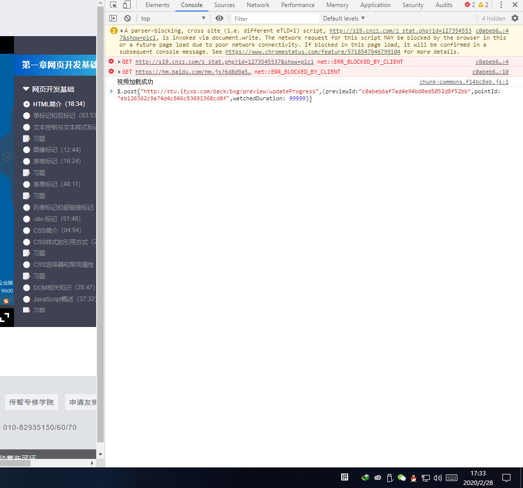 $.post("http://stu.ityxb.com/back/bxg/preview/updateProgress",{previewId:"c0abeb6af7ad4e94bd0ed5052d8f52bb",pointId: "eb126362c9a74d4c846c83691368cd0f",watchedDuration: 99999})