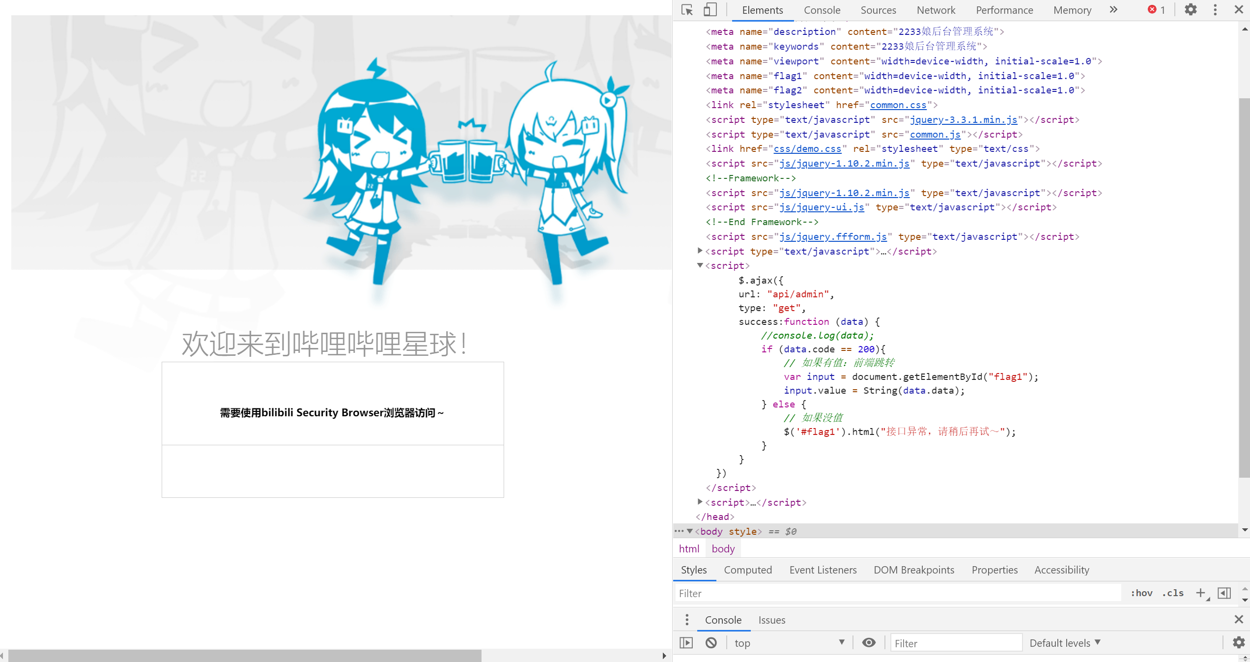 浏览器的标识那肯定就是UA嘛,所以这题就是用b站的UA来访问~