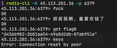 这题要靠端口扫描,对常规端口扫描后发现6379端口开发,然后就是有手就行的未设防Redis服务器啦。